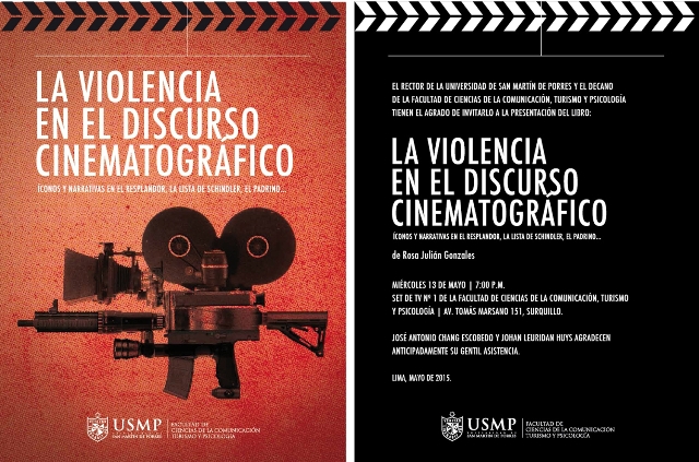El Instituto de Investigación de la Escuela de Ciencias de la Comunicación de la Universidad de San Martín de Porres presenta una de sus últimas publicaciones en el campo del séptimo arte, “La violencia en el discurso cinematográfico” de la autora Rosa Julián Gonzáles, obra que analiza el contenido violento, su lenguaje audiovisual y el mensaje final de seis películas taquilleras.
