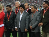 Antes del inicio del partido amistoso en el estadio Nacional entre Perú y México, los campeones de la Copa América 1975 recibieron un homenaje de parte del Directorio de la FPF, encabezada por Edwin Oviedo, además de recibir el saludo de todos los presentes.