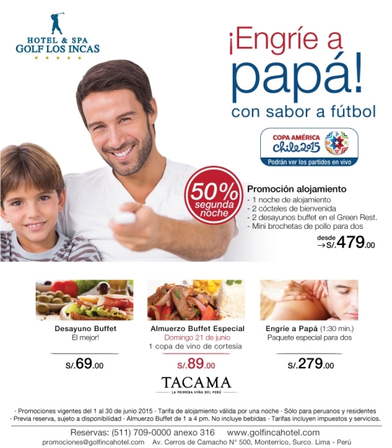 El Hotel & Spa Golf Los Incas ofrece promociones interesantes todo el mes, convirtiéndose así en la mejor opción para celebrar el Día del Padre.