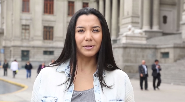 Lima, 11 de junio de 2015. La actriz Mayra Couto, conocida por su papel de Grace en ‘Al fondo hay sitio’, es parte de una campaña en redes sociales (Facebook, Twitter, Youtube) en contra de la piratería de software, organizada por Microsoft.