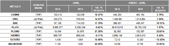 PRODUCCIÓN METÁLICA ABRIL 2015