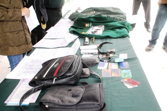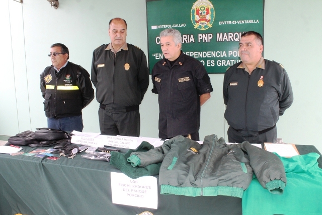 Los sujetos fueron identificados como Arnol Apolo Odicio (27), Oswer Hernández Chávez (32) y Oscar Ferre Arana (34). Entre lo incautado, la policía encontró armas de fuego, balas, casacas, chalecos, polos, documentación como acta de intervención, celulares, tarjetas bancarias de sus víctimas, entre otros objetos; incluso se puso a disposición el auto Chevrolet de placa A7Q-177 que utilizaban para sus extorsiones.
