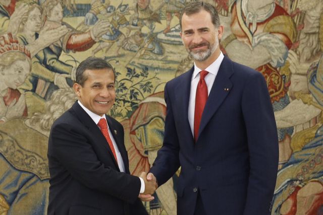 Madrid, jul. 07. El Mandatario Ollanta Humala Tasso sostuvo hoy una reunión con el rey Felipe VI de España en el Palacio de La Zarzuela, donde despacha el monarca español.