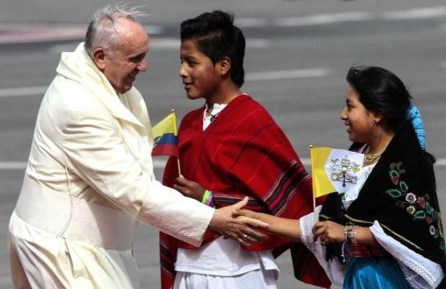 En ese sentido, Francisco ofreció a Correa «el compromiso y la colaboración de la Iglesia para servir a este pueblo ecuatoriano que se ha puesto de pie con dignidad».