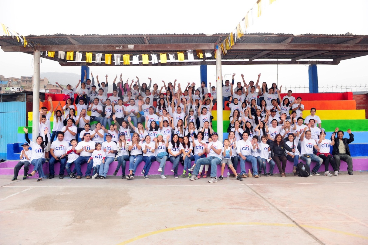 En Perú, el Gerente General de Citibank del Perú, Julio Figueroa, dio inicio a la jornada en la que más de 150 colaboradores del banco remodelaron los ambientes de la I.E. Nro. 7221 – La Rinconada, una institución educativa nacional de carácter técnico – humanista ubicada en San Juan de Miraflores. Entre los trabajos que se desarrollaron se encuentran la instalación del sistema de riego del biohuerto del colegio, el sembrío de áreas verdes, construcción de armarios para aulas, el pintado de murales educativos, entre otros.