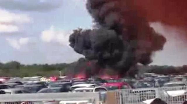 La aeronave se estrelló en un lugar de subasta de vehículos, donde provocó el incendio de varios coches.