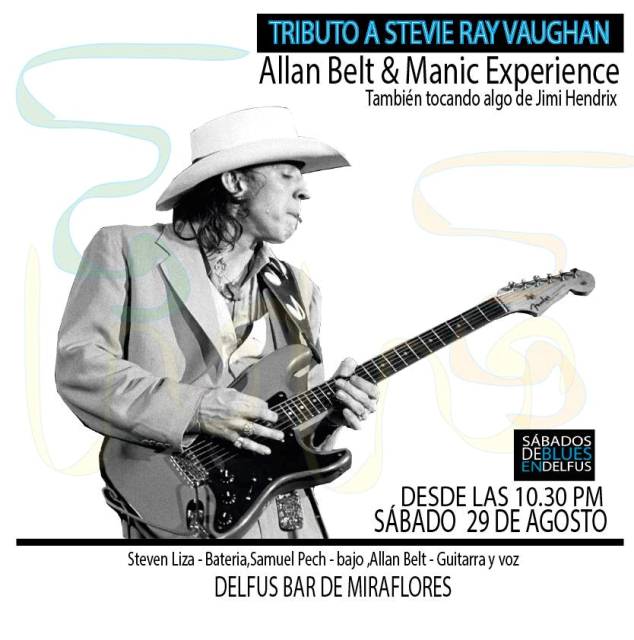 Un 27 de agosto de 1990, el virtuoso guitarrista Stevie Ray Vaughan muere en un helicóptero que lo traslada a Chicago. Así que este sábado 29, Allan Belt & Maniac Experience les trae para ustedes un super tributo en memoria del maestro Vaughan y luego, temas del grande Jimi Hendrix en el Delfus Bar desde las 10PM.