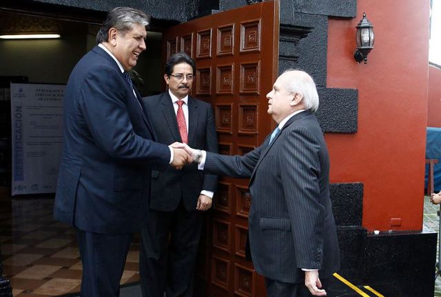 El Presidente del Consejo de Ministros Pedro Cateriano, llegó esta mañana al Instituto de Gobernabilidad de la Universidad de San Martín de Porres, para reunirse con el líder del Partido Aprista Peruano, Alan García.