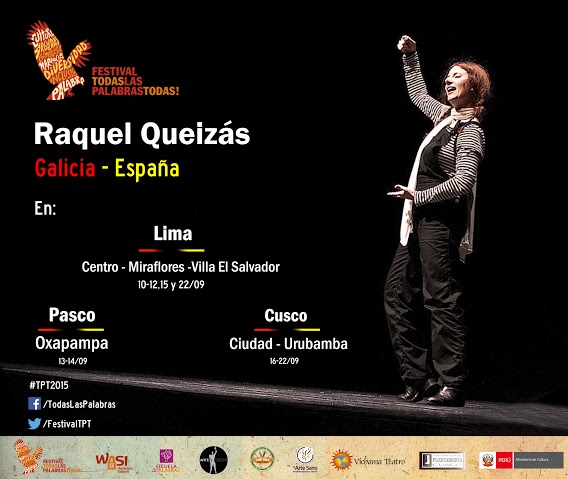 La reconocida narradora oral, actriz y titiritera la española (Oruense) Raquel Queizás visitará Lima donde ofrecerá su gran espectáculo titulado “Palabras en la boca” donde será parte del V Festival “Todas las Palabras, Todas” organizada por la Asociación Cultural Wasi.
