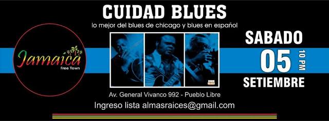 Nuevamente se presenta este sábado 05, Ciudad blues con nuevos hits en español e inglés trayendo lo mejor de los clásicos Blues, Power Blues, Funky&Blues y más Jamaica Free Town desde las 10PM. No te lo pierdas!!!