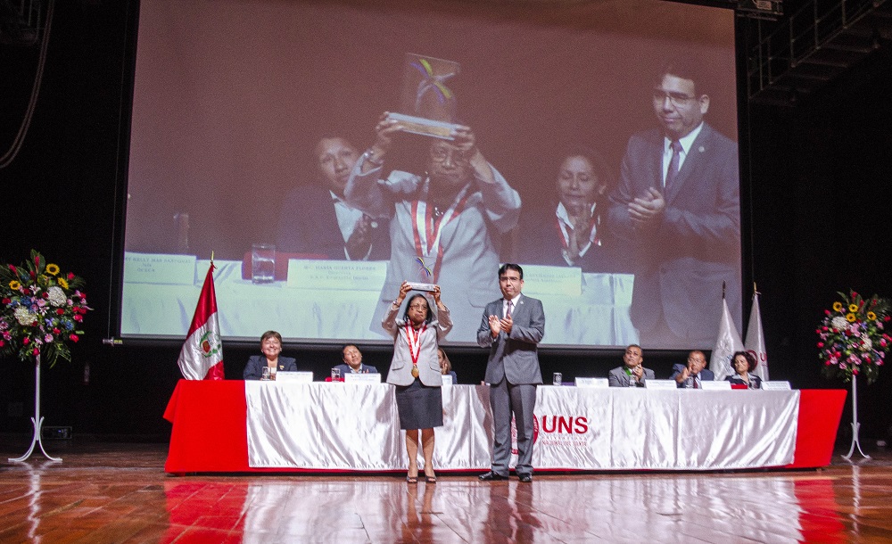 Al final de la ceremonia la universidad distinguió a los presidentes de las comisiones de autoevaluación María Baca Espejo y Benito Zavaleta Cabrera, de las carreras de Educación Inicial y Educación Primaria, respectivamente.