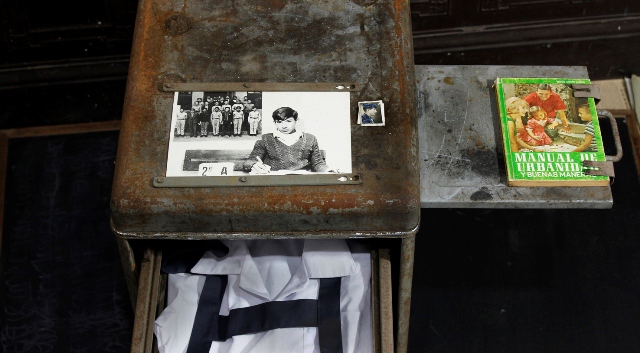 Se trata de una exposición sobre objetos, donde los armarios, las carpetas, los uniformes, la iconografía militar y los propios libros resultan agentes constitutivos de una inercia escolar deteriorada. Aun con signos de modernización, se desliza que los nuevos objetos que emergen siguen atrapados en un contexto que los aprisiona cruelmente. La muestra es también una exposición sobre actores, la cual trae consigo un sin número de testimonios de personas que siempre han querido cambiar las cosas.