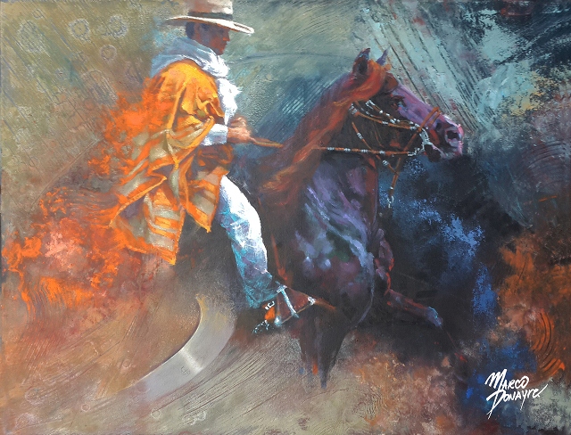 Marco Donayre es un pintor en constante desarrollo de su técnica. Su arte transmite identidad con pasión y fuerza, más allá de cualquier lugar común, en busca de libertad creativa. Su estilo único en cuanto a técnica se refiere, parte de una rigurosa disciplina. Como resultado, podemos apreciar movimientos vigorosos realizados con precisa ejecución, además de del manejo de una paleta original de colores.