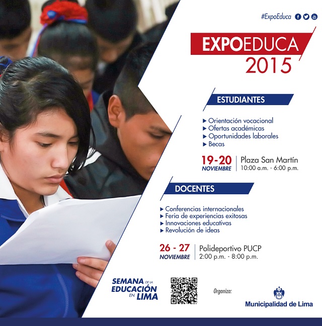 Con la finalidad de aportar en el desarrollo de la educación, la Municipalidad de Lima realiza la semana de la educación en la que realizarán diversas actividades de las cuales destaca el EXPOEDUCA 2015.