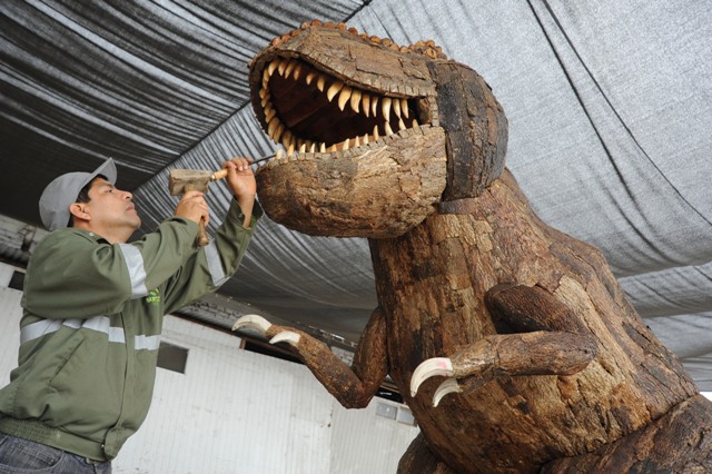 Durante casi tres meses, el artista de la Municipalidad de Santiago de Surco, Oscar Agapito Cassana se encargó de elaborar al gigante Rex con todos los detalles y características físicas.
