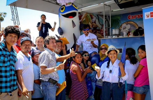 Lima, 25 de febrero de 2016.– En busca de revertir el incremento del sobrepeso y la obesidad en Perú, el Programa Nacional “A Comer Pescado” del Ministerio de la Producción viene ofreciendo en las playas de Lima y Callao clases gratuitas de cocina saludable a base de pescado y pota.