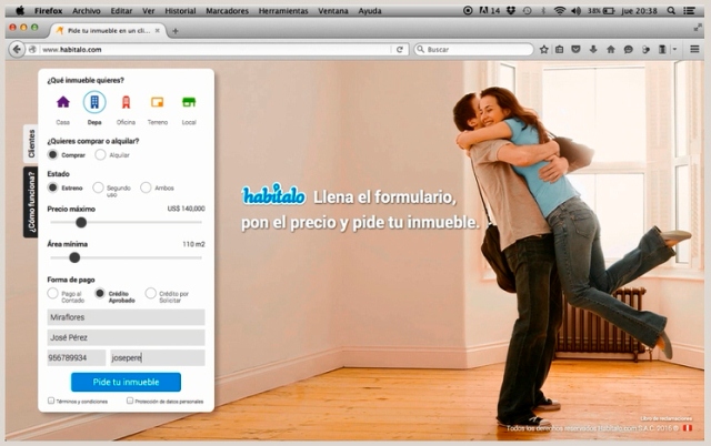 Habítalo.com está diseñado para un público que no tiene tiempo en buscar un inmueble que se ajuste a su necesidad, sea para venta o alquiler. Se trata del primer portal inmobiliario en Perú «On-demand» (Bajo demanda), donde solo se hace el pedido del inmueble que se quiere, se coloca el precio que puede pagar y listo. “Con esta herramienta solo llena el formulario y las inmobiliarias y corredores registrados te harán llegar vía mail las opciones de acuerdo a tu solicitud, sin invertir horas de horas buscando en internet”, precisó Jose Luis Jares.
