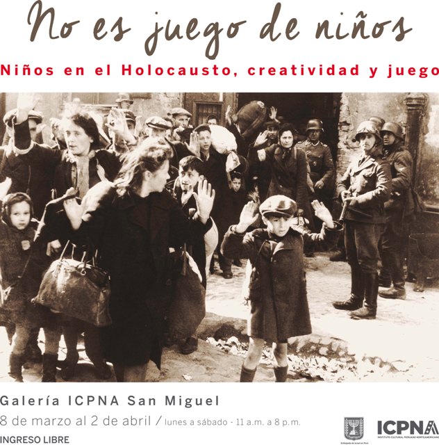 Aproximadamente un millón y medio de los seis millones de judíos asesinados durante el Holocausto fueron niños. La exhibición fotográfica “No es juego de niños: niños en el holocausto, creatividad y juego” organizada por la Embajada de Israel, cuenta la historia de la sobrevivencia – la lucha de estos niños para aferrarse a la vida.