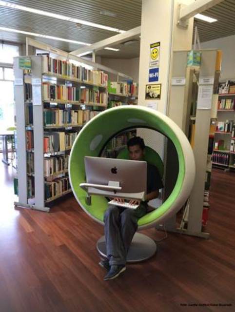 Desde ayer en la bibliotecael del Goethe -Institut Perú está a tu disposición la Sonic Chair, donde podrás escuchar música en un ambiente casi tridimensional y a la vez trabajar en la iMac que tiene conectada. Los esperamos para que descubras sus funcionalidades.