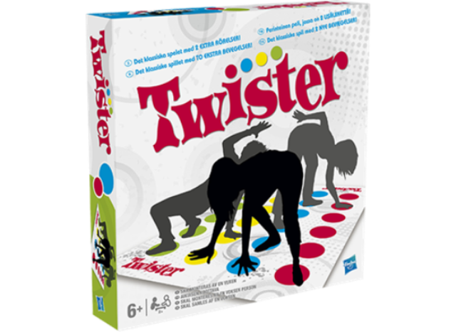 En Twister, cada jugador durante su turno gira la ruleta con puntos de colores para definir en qué color del mat coloca sus manos o pies según corresponda. Entonces comienzan los enredos y el equilibrio se complica. Gana el último jugador que se logra mantener en pie en el mat.