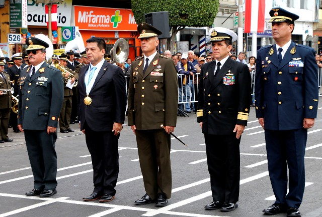El alcalde Juan Sotomayor, junto a autoridades civiles y militares, paseó el Pabellón Nacional desde la Fortaleza Real Felipe hasta la Plaza Bolognesi