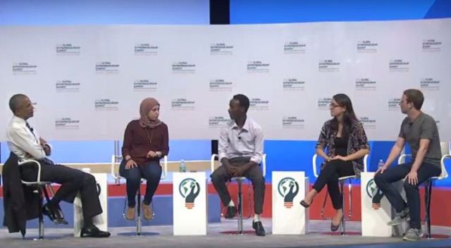 En el evento organizado por el gobierno de los Estados Unidos, que reunió a emprendedores de todas partes del mundo e inversionistas, la joven empresaria habló sobre la importancia el rol de los start-ups (pequeñas empresas en formación), la innovación y la red social Facebook para impulsar negocios.