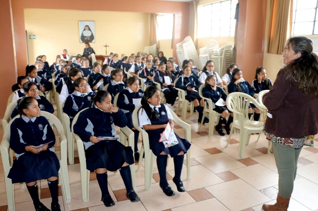 Más de 60 alumnas de quinto y sexto grado de primaria del colegio Santa María de Mozzarello recibieron una charla didáctica para evitar el trabajo infantil en el marco de la campaña «Contra la trata de personas en la modalidad de explotación de niños». El evento fue organizado por la Defensoría Municipal del Niño y del Adolescente (Demuna) de la Municipalidad Provincial del Callao y la Segunda Fiscalía Provincial de Familia del Ministerio Público.