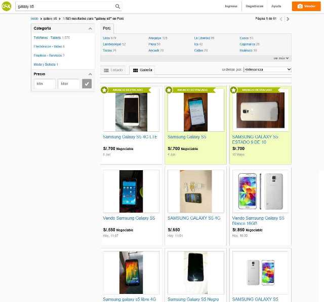 También es importante resaltar que, en dicho periodo, uno de los términos más buscados es el de “Galaxy S5”, lo que ha dado dinamismo a las consultas por equipos de comunicación en la plataforma peruana de OLX.