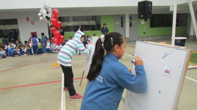 La celebración se llevó a cabo exitosamente, los alumnos fueron divididos en dos grandes grupos; el primero estuvo integrado por los niños de 1ero a 5to, quienes a través del juego “la pizarra del saber” debían identificar diversas imágenes relacionadas a seis beneficios de la leche; mientras que el segundo grupo conformado por los adolescentes de 6to a 11mo jugaron el “revienta y gana”, en el cual ponían a prueba su agilidad y rapidez para reventar un globo y poder responder las diferentes preguntas acerca de la leche y sus beneficios .