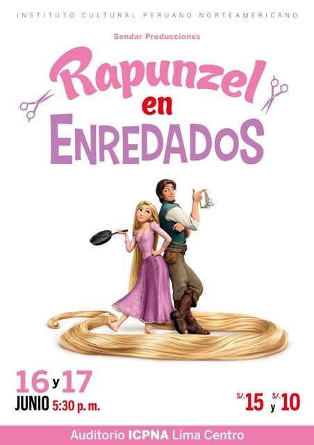 Sendar Producciones presenta “Rapunzel en enredados”, comedia infantil y familiar llena de fantasía, amor y diversión. La obra nos narra la historia de Rapunzel, una vivaz doncella con una cabellera muy larga se encuentra encerrada en una torre por la malvada Gothel, la cual se hace pasar como su madre ya que desde recién nacida fue tomada prisionera. Sus padres, en honor a su recuerdo, lanzan linternas flotantes en el cielo recordado a su hija perdida. Esta versión libre de la película Enredados, se presentará los días jueves 16 y viernes 17 en el Auditorio ICPNA Lima Centro (Jr. Cuzco 446). El costo de las entradas es de S/.15 y S/.10.