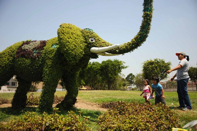 Asimismo, un tiranosaurio rex de casi 2.80 metros de altura y 120 kilos, arte topiario de león, ciclista, una casa de bambú, un biodigestor que se usa para producir gas metano y fertilizantes.