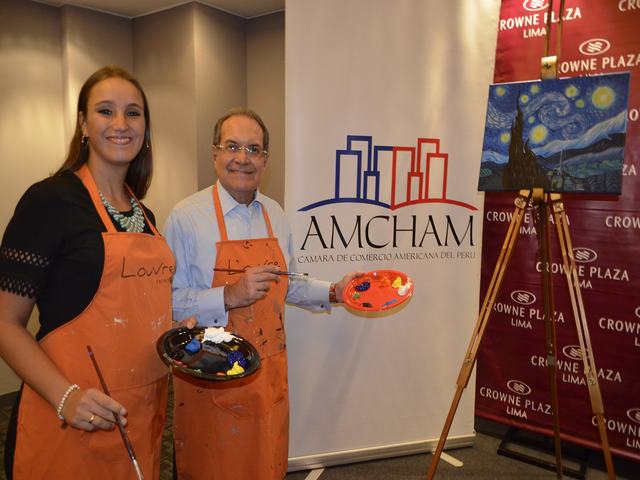 Ejecutivos de destacadas empresas de Lima participaron de una divertida sesión de pintura denominada PAINT, DRINK & RELAX organizada por el Crowne Plaza Lima, Louvre Paint Bar y la Cámara de Comercio Americana, AMCHAM.