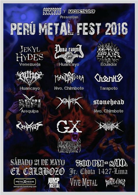 Lima, jul. 25. Lima se convertirá en el epicentro del metal mundial. Repitiendo el primer festival del 2015, este año se han congregado 19 bandas, contando con un cartel de 9 bandas peruanas y 10 internacionales.