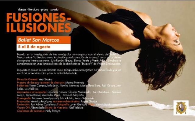 Con el espectáculo Fusiones – Ilusiones, inicia el 8vo. Festival Fusiones Contemporáneas, organizado por el Centro Cultural Peruano Británico. Obra constituida por cuatro coreografías que se inspiran en ideas y estados de ánimo tomados de textos y poemas de la literatura universal y que se nutre de ambas artes.