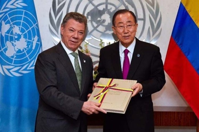 El jefe de la ONU, Ban Ki-moon, felicitó al gobierno colombiano «por su visión y determinación«.