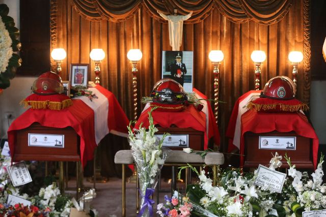Lima, oct. 21. Los restos de los tres bomberos que fallecieron en el cumplimiento de su deber, durante un incendio registrado el martes en una fábrica de calzado y un almacén del Ministerio de Salud (Minsa), serán sepultados esta tarde en el cementerio Campo Fe, en Huachipa, informaron los Bomberos.