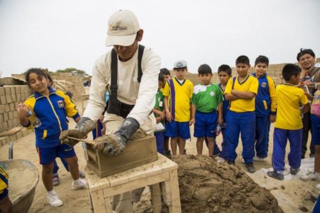 Trujillo, nov. 26. La elaboración simbólica de adobes forma parte de las acciones de sensibilización que promueve el Proyecto Especial Complejo Arqueológico Chan Chan, en la región Lambayeque, a través de la Unidad de Promoción y Participación Ciudadana, y es replicada por escolares de la jurisdicción.