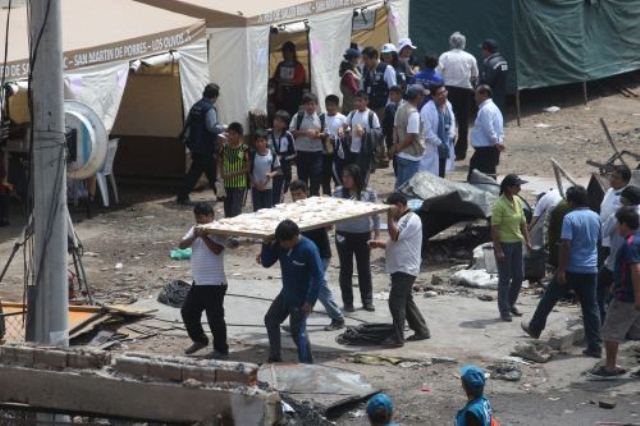 personal del Ejército llegó a la zona para apoyar el armado de carpas proporcionadas por la Municipalidad Metropolitana de Lima, para albergar a los damnificados que perdieron la totalidad de sus viviendas.