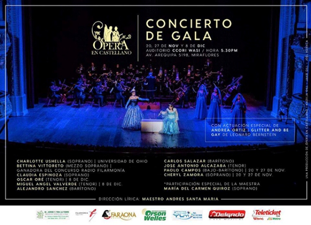 Opera en Castellano presenta el recital Voces Bellas de la Opera junto a HATUN KILLA sucesora de YMAC SUMAC con una extraordinaria puesta en escena mas de 14 musicos en la orquesta de la camerata de Opera en Castellano. Un repertorio variado y muy rico en belleza, junto con uno de los mejores violinistas del mundo Hugo Arias que se instalara definitivamente en el Peru despues de haber compartido su arte a nivel mundial y en las mejores orquestas del mundo ,vuelve a su patria donde todo el Peru lo espera.