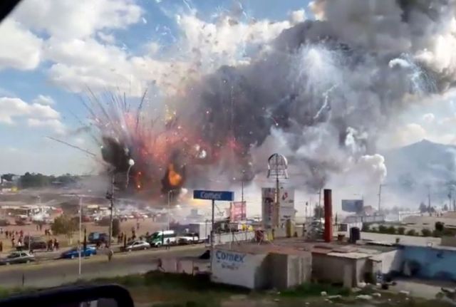 Al menos 22 muertos y varios heridos dejaron una serie de Explosiones en un mercado de Juegos Pirotécnicos en el pueblo Tultepec del estado de México.