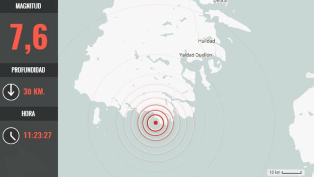 Un Sismo de magnitud 7,6 sacudió hoy la localidad de Quellón, en el sur de Chile, y, aunque no se han reportado víctimas ni daños materiales, se inició una evacuación en la zona por una alerta de Tsunami.