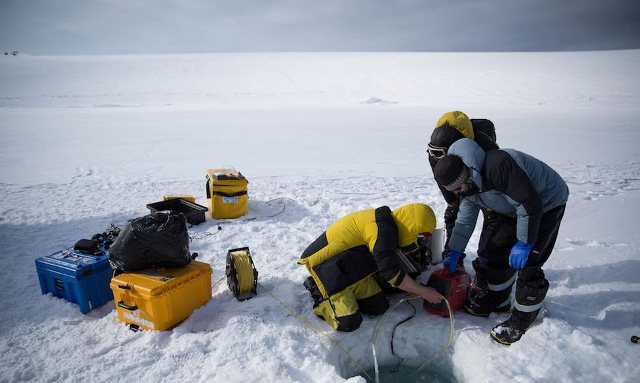 La División Australiana de la Antártida (AAD), dependiente del ministerio del Medio Ambiente, adosó una cámara a un vehículo teledirigido que entró en el agua mediante un pequeño agujero en el hielo.