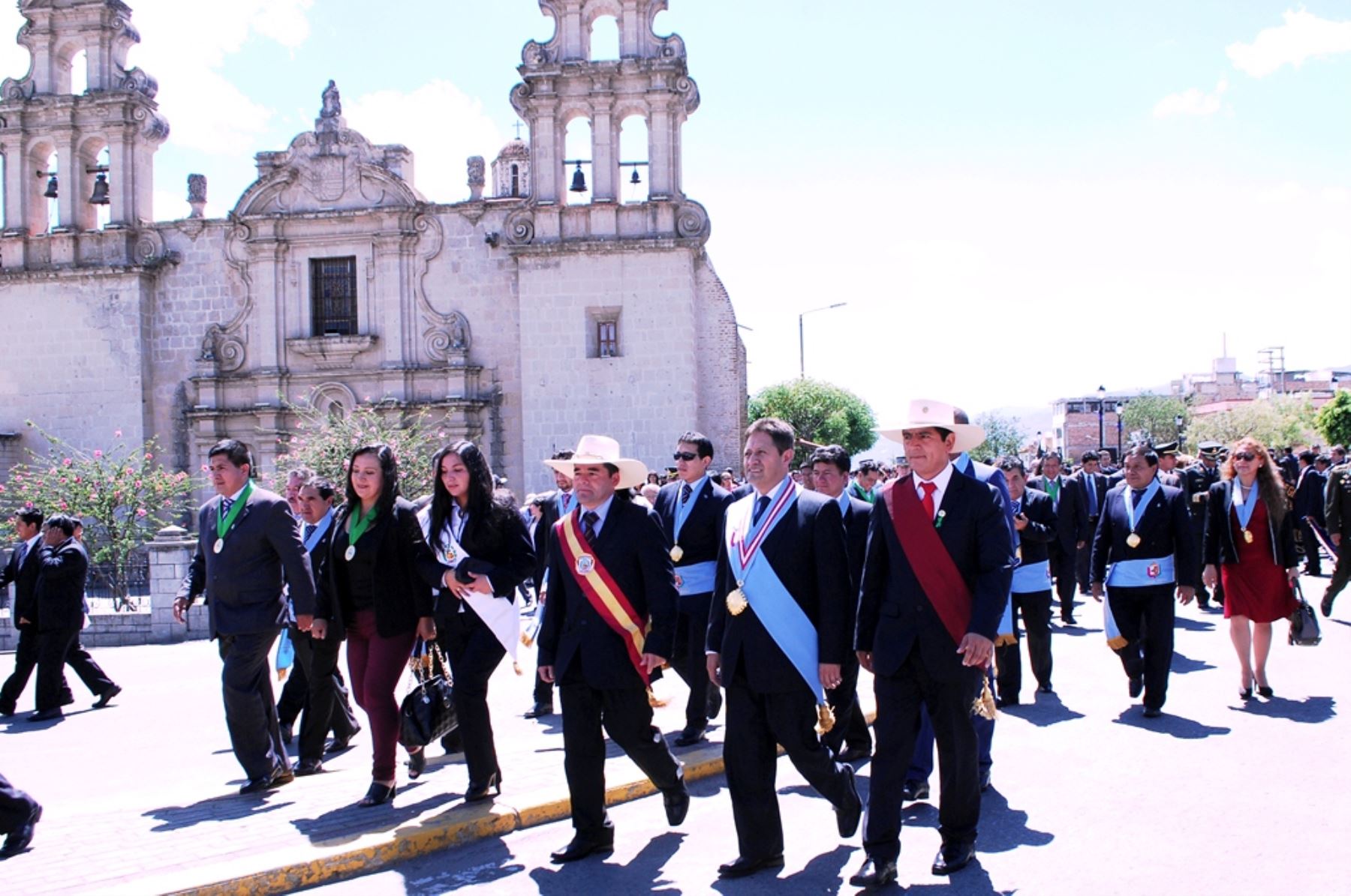 El gobernador regional Porfirio Medina Vásquez, el alcalde de Cajamarca, Manuel Becerra Vílchez, y el prefecto regional Edwin Edquen Sánchez, participaron de las actividades en el día central de aniversario que se inició con una misa Tedeum en la Catedral, el acto de homenaje a los héroes, el paseo de la bandera y sesión solemne en la municipalidad.
