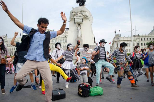 Para dar inicio el Festival de Mimo de Lima 2017, el pasado domingo 8 de enero cientos de mimos y artistas del movimiento participaron en la segunda edición de la Maratón en Cámara lenta bajo el lema “No Hables”. Desde las 2:00 p.m. fueron congregándose los organizadores, artistas, padres e hijos para participar de este evento familiar.