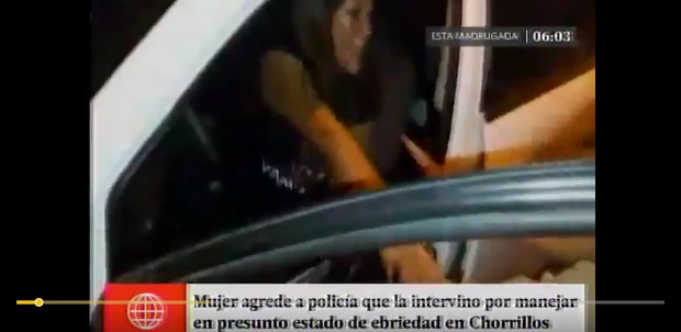 Según informó el medio de prensa América Noticias, unos policías realizaba anoche un operativo por el robo de un celular cuando vieron que un vehículo se desplazaba de forma zigzagueante. Le pidieron detenerse a la conductora, pero ella quiso escaparse y chocó contra un patrullero. Los agentes se acercaron a la mujer para pedirle bajar de su vehículo. La enfurecida conductora agredió a la alférez Edith Inga Mendoza, quien quedó con 2 días de atención facultativa y 6 días de incapacidad médico legal.