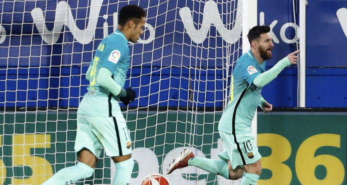 Denis Suárez (31), Messi (50) Luis Suárez (68) y Neymar (90+1) firmaron la goleada azulgrana en el estadio de Ipurua.