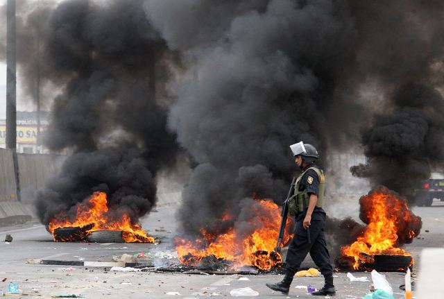 En respuesta, la policía lanzó bombas lacrimógenas hacia los manifestantes que estaban ubicados en el Asentamiento Humano Los Eucaliptos. Los agentes detuvieron a tres personas por realizar actos vandálicos.