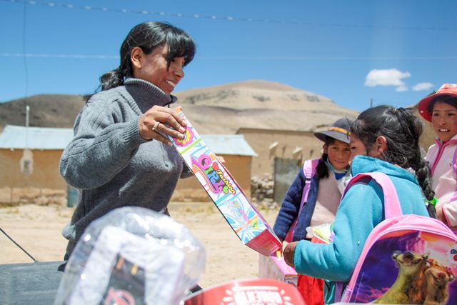 Claudia de 10 años de edad, de la comunidad de Tincopalca, recibió una muñeca. “Tremendo juguete, de verdad que nunca pensé que me fueran a dar algo tan bonito”, relató la niña.