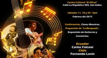 El 2do Festival Internacional de Guitarra Flamenca y Fusión «Homenaje a Paco de Lucía» se realizará los sábados 11, 18 y 25 de Febrero, de 10 am a 10 pm, en el Teatro de Cámara del Centro Cultural “El Olivar” ubicado en la Calle La República 455 San Isidro; todas las actividades son de entrada […]