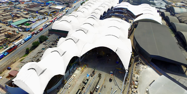 CIDELSA, desarrollo la ingeniería del proyecto y la ejecución la hizo en consorcio con otra empresa, las etapas de la construcción iban a estar compuesto de la siguiente manera: Pilotes, cabezales, columnas, arcos curvos de acero y membrana como cobertura, El concepto para que la estructura fuese optima se tomó de las coberturas tensionadas, el cual permitió tener distancias entre columnas desde 35m hasta 80m libres, con arcos inclinados y arriostrados entre sí por acero y membrana de alta resistencia.